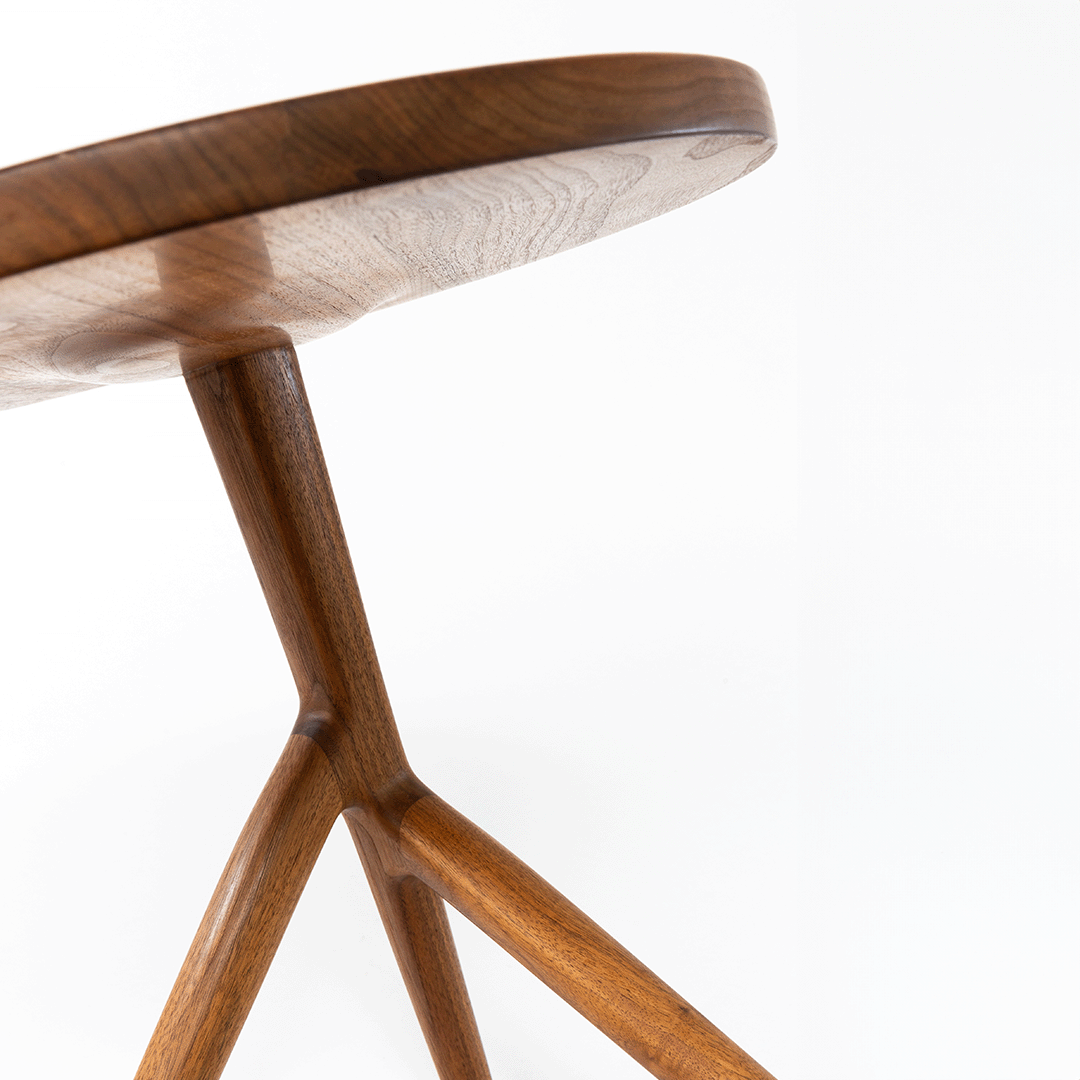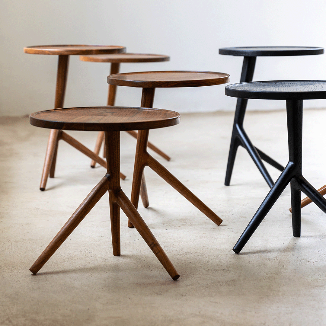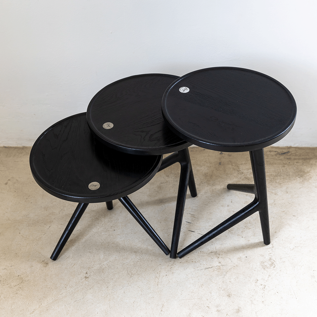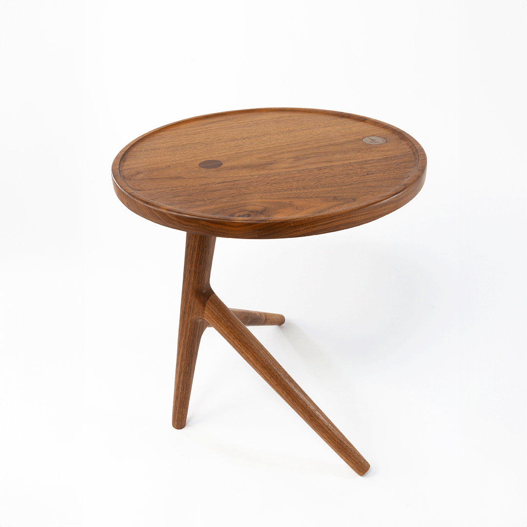 The round three-leg side table is unique and suitable for any living space. For a modern eccentric look, pair it in a trio making it a timeless piece of art.